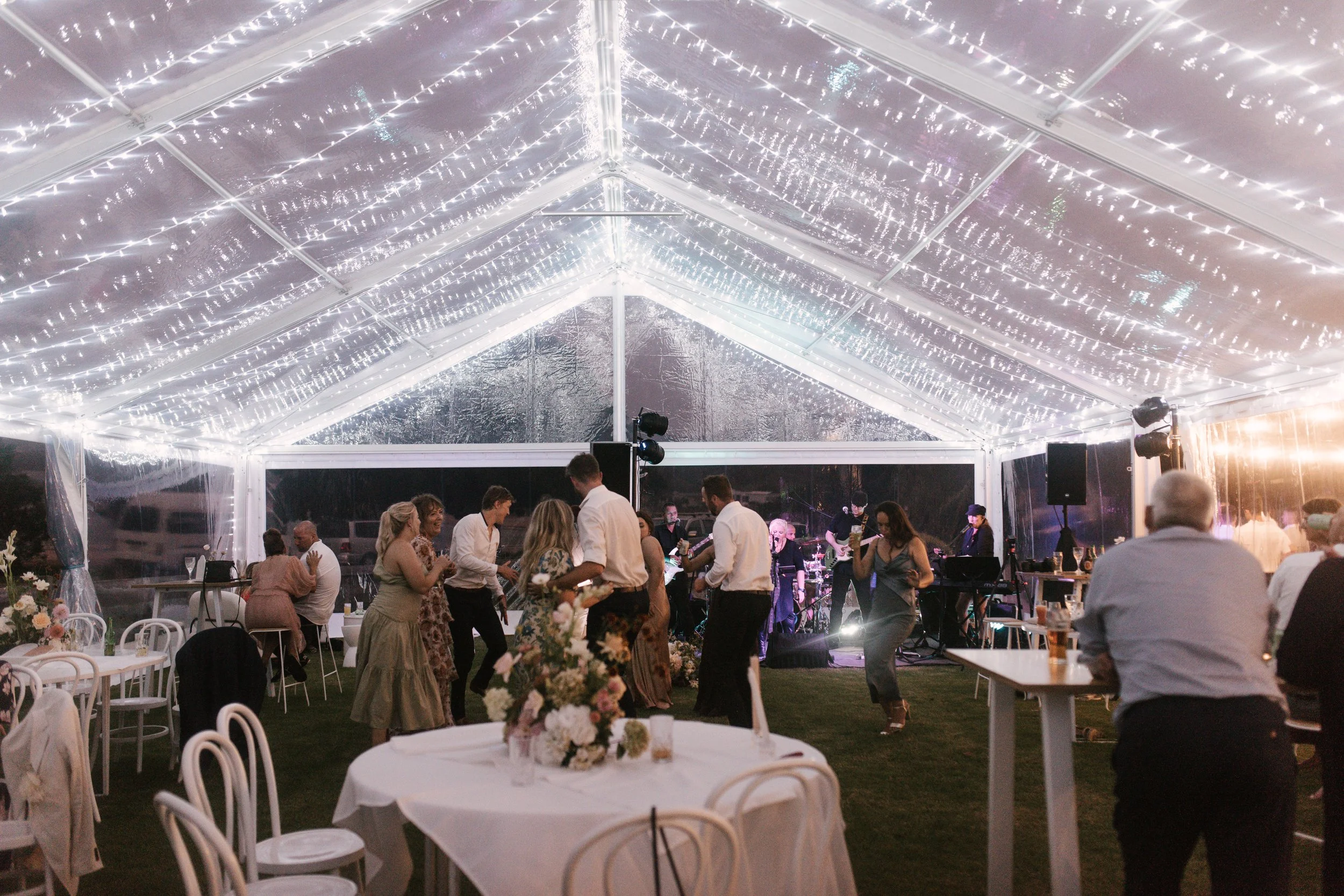 Clear Marquee, Fairy Lights, Festoons Lights and Poles, Birch and White Bar Leaners, Scandi Bar Stools, Outdoor Umbrellas and Stands, Scallop Bar, Scallop Plinths