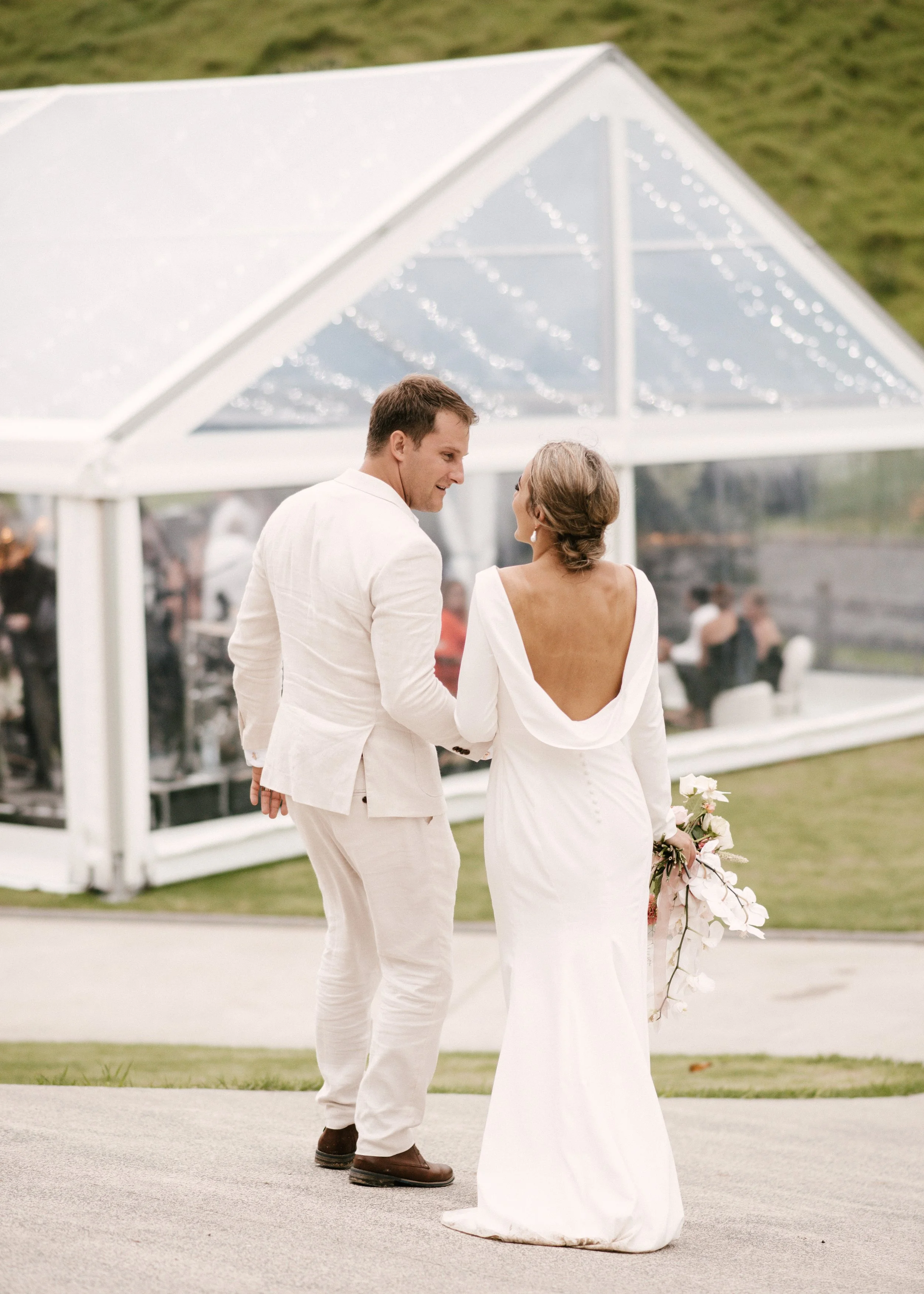 Nestled in front of a hill with ocean views, this wedding still came together without a hitch - despite the cyclone hitting the very next day!