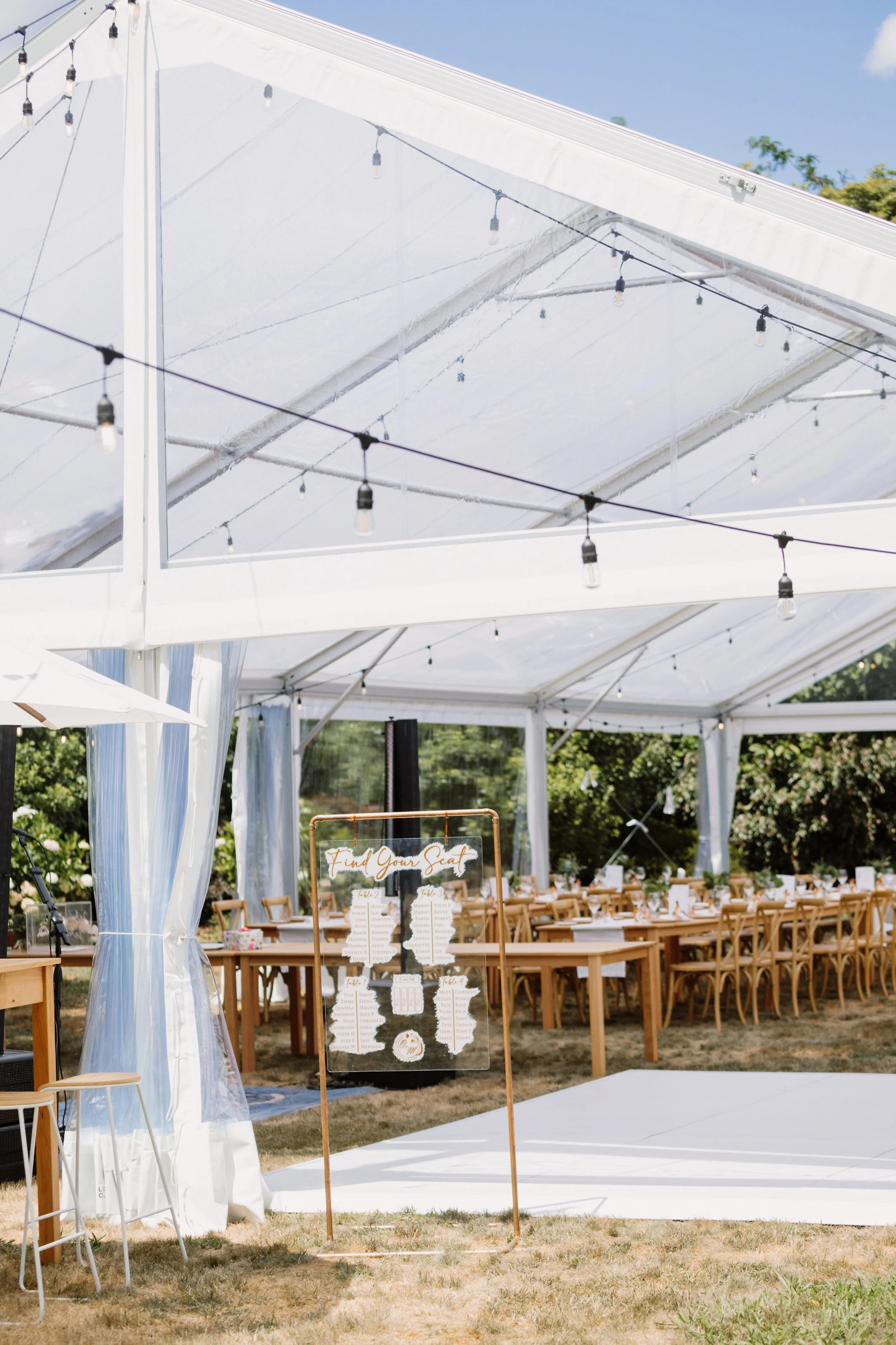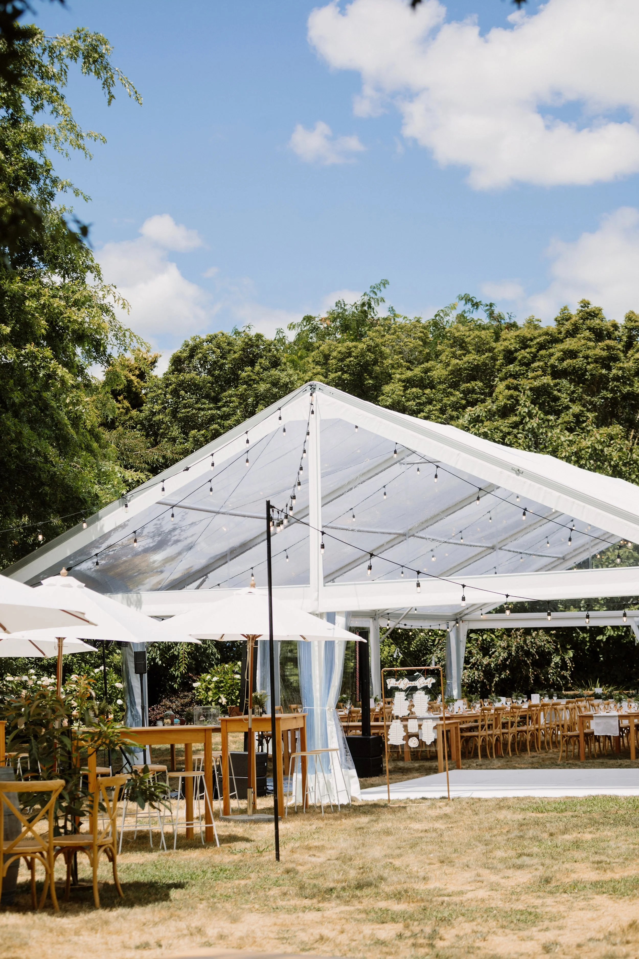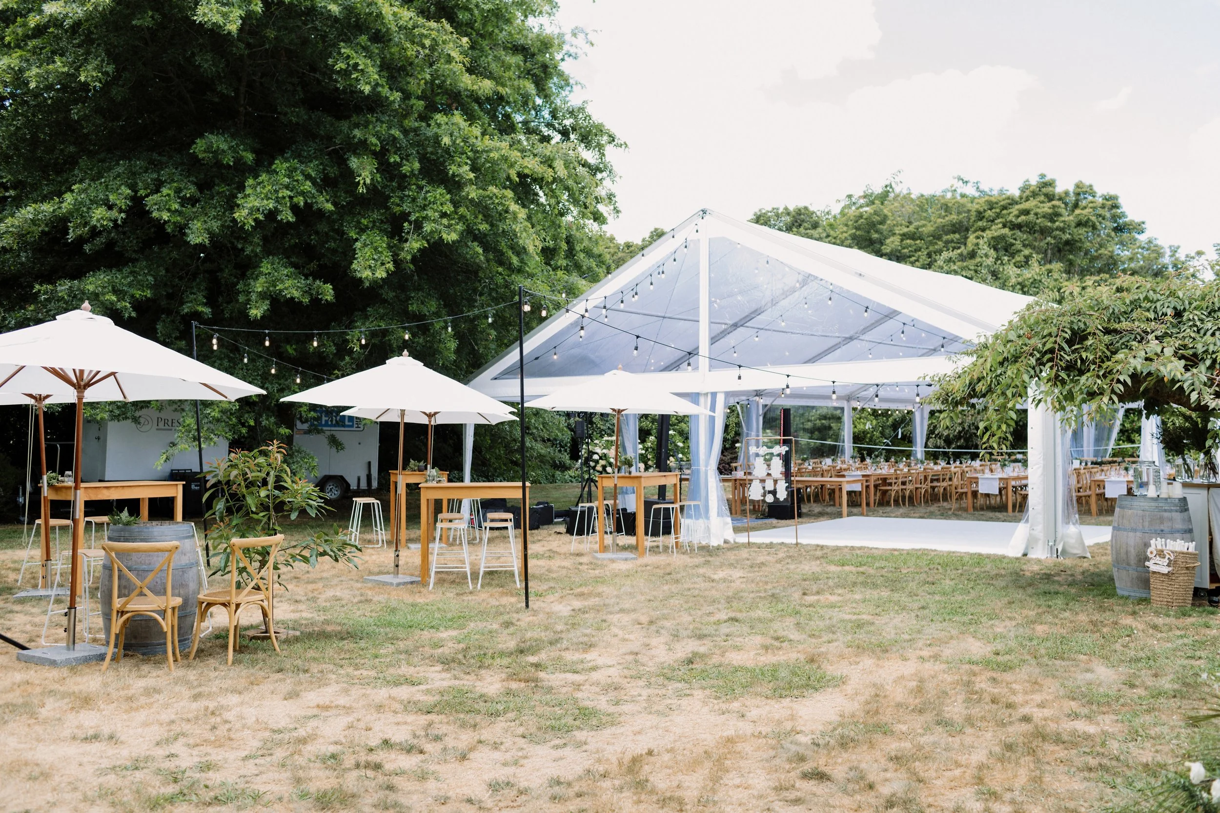 Clear Marquee | Festoons Lights and Poles | Bench Seats | Outdoor Umbrellas and Stands | The Brick Bar | Dance Floor | Wine Barrels ( with and without hole) | Matai Table | Rustic Signage (Grazing Table) | Outdoor Games | Wishing Well | Cedar Sign Holder (Stained) | Seagrass Floor Cushions (Square) |