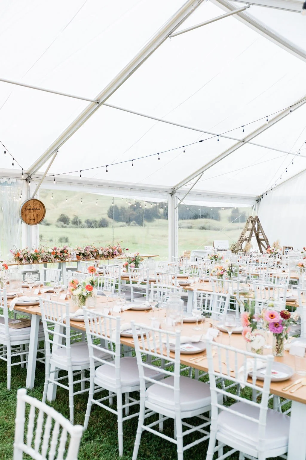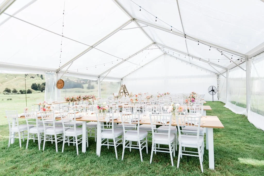 Clear Marquee | Festoons Lights and Poles | Dining Tables | Bench Seats | Dance Floor | Birch and White Bar Leaners | Bar Stools - Oak and White | Outdoor Umbrellas and Stands |
