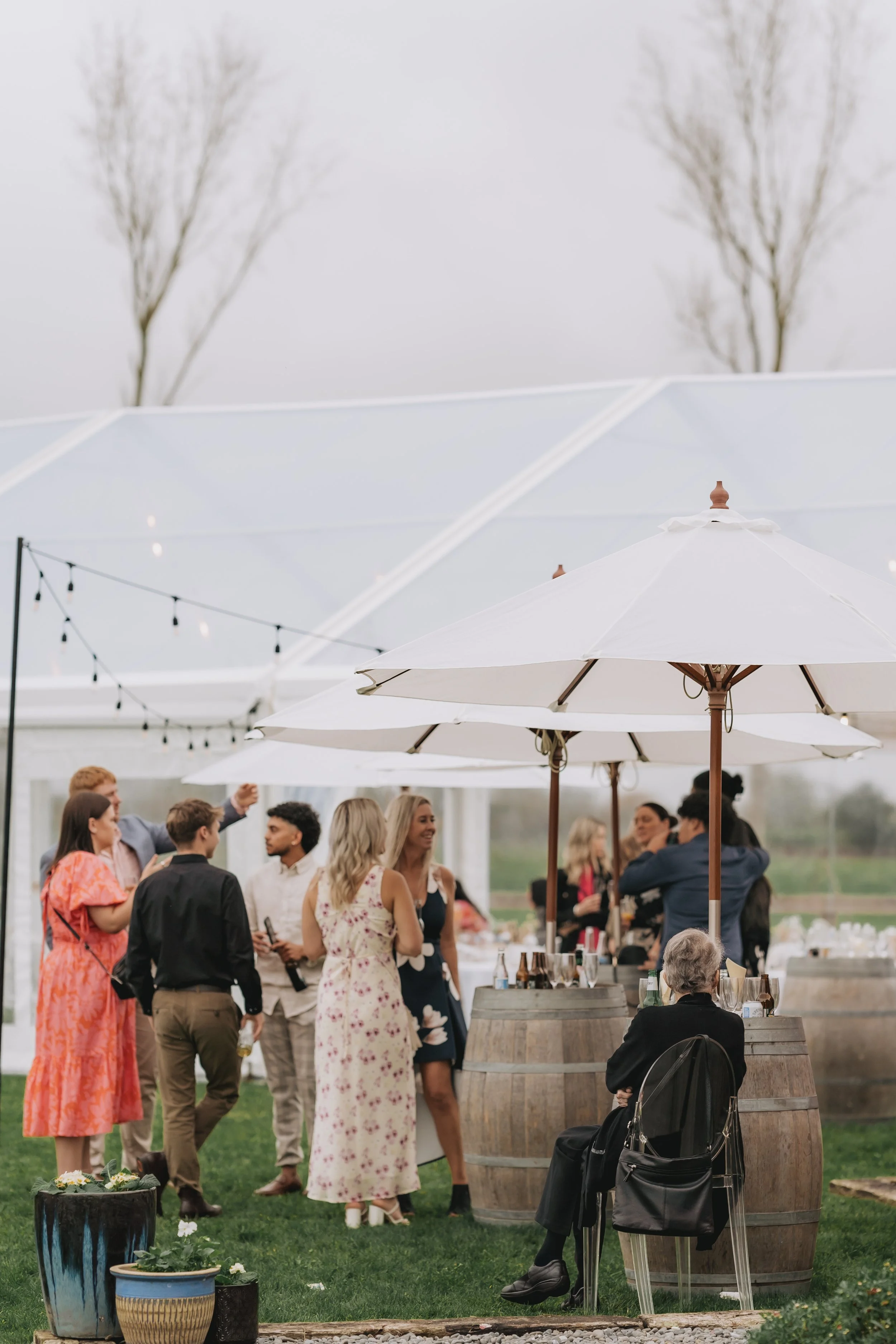 Clear Marquee | Festoons Lights | Dining Tables | Bench Seats | Ghost Chairs | Wine Barrels (with hole) | Scallop Bar | Scallop Plinth | Wishing Well | Outdoor Umbrellas and Stands |