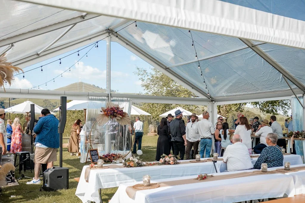 | Clear Marquee | Festoons Lights and Poles | Bench Seats | Wine Barrels (half, with and without hole) | Rustic Signage | Wooden Easel | Birch and White Bar Leaners | Bar Stools - Oak and White | Outdoor Umbrellas and Stands | Rimu Herringbone Table | Matai Table | Seagrass Floor Cushions (Square and Circle) | Oak Signing Table |