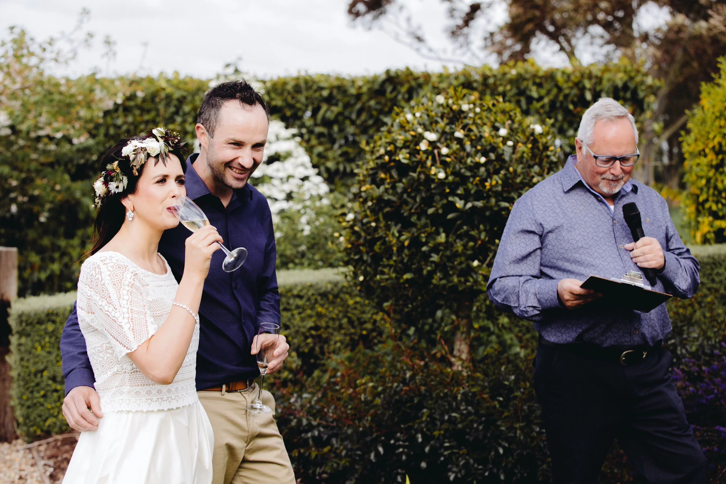 My parents had moved four houses up the road from us (in Whatawhata, Hamilton) the Christmas before. It came with a beautiful, manicured garden - it was begging for a wedding to be held there and fitted with the intimate theme of how we wanted our wedding to be. We were able to choose any day & date we liked and it meant we could use the set up for the next couple of days when everyone was still around.